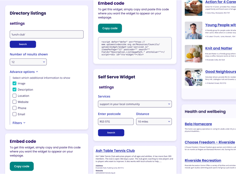 External organisations can embed your widget, driving users back to your main directory